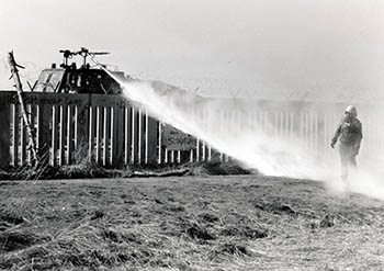 Fluglärm, Kerosin, mit viel Wald drum herum. Erst als leichte Zweifel an dem juristischen und politischen Prozedere aufkamen, gründete sich 1979 die Aktionsgemeinschaft gegen die Flughafenerweiterung, die gewaltfrei, aber aktiv den Bau der Startbahn verhindern wollte. Unter dem Druck dieser Bürgerinitiativbewegung schlossen sich auch die Parteigliederungen vor Ort, von CDU bis hin zur DKP, zu einem einmaligen Parteienbündnis zusammen. Obwohl man weiterhin den Klageweg beschritt, beschloss man im selben Jahr, ein Hüttendorf auf dem Gelände der geplanten Startbahn 18 West zu errichten - nicht ohne Ironie: Man stellte für die erste Hütte einen Bauantrag bei der Stadt Flörsheim und begann schließlich am 3.5.1980 auch ohne Baugenehmigung mit ihrem Bau. Um diese Hütte herum entstanden im Laufe des folgenden Jahres über 50 Hütten, Erdwohnungen und Baumhäuser - selbst eine Kirche und ein Neubauviertel sollten nicht fehlen. Nur fünf Monate später eskalierte die hessische Landesregierung: Obwohl verschiedene Klagen anhängig und noch nicht abgeschlossen waren, verfügte die SPD-geführte Landesregierung den Sofortvollzug, zog über 4000 Polizeibeamte zusammen, um das erste Teilstück, das Sieben-Hektar-Gelände zu roden. Die Bürgerinitiativen/BIs schlugen Alarm und es dauerte schließlich mehrere Tage und Nächte, die über 3.000 Menschen, die sich dem Sofortvollzug in den Weg stellten, zu vertreiben. Trotz des gewaltsamen Vorgehens vonseiten der hessischen Landesregierung wollten die BIen den Glauben an den Rechtstaat und die Demokratie nicht aufgeben und entschlossen sich für eine Art Doppelstrategie: Zum einen sollte das Hüttendorf den gewaltfreien, aber aktiven Protest verkörpern, zum anderen leitete man 1981 ein Volksbegehren und einen Volksentscheid ein, um die Startbahn noch zu verhindern. Wieder verweigerte die SPD-geführte Regierung jede politische Lösung des Konfliktes, erklärte - im Gestus des Absolutismus - das in der hessischen Landesverfassung verankerte Recht auf ein Volksbegehren für verfassungswidrig und ließ abermals ein Polizeiheer aufziehen, um die nächste Bauphase (Baulos I) gewaltsam durchzusetzen. Dieses Mal wurden 10.000 Polizeibeamte dafür bereitgestellt, wieder dauerte es Tage und Nächte, bis diese staatliche Gewaltstrategie Erfolg hatte. Am 2.11.1981 wurde schließlich das Hüttendorf geräumt, unter Einsatz von Sondereinsatzkommandos/SEK's und einer bis dahin nie gekannten Brutalität. Was für gewöhnlich zu Resignation und Rückzug führt, löste eine Protest- und Solidarisierungswelle im Rhein-Main-Gebiet und weit darüber hinaus, aus: Bahnhöfe, Rathäuser, Straßen wurden besetzt, der Hessische Rundfunk wurde belagert, der Frankfurter Flughafen für Stunden blockiert das Gespenst von Unregierbarkeit einer ganzen Region machte die Runde. Auch das führte zu keinem Umdenken auf Seiten der Regierungsparteien. Sie diskutierten lieber über die Möglichkeit eines vorübergehenden, freiwilligen Verzichts auf die Ausübung von Grundrechten, lehnten ein Volksbegehren ab, dem sich devot der hessische Staatsgerichtshof anschloss, und ordneten die Rodung von Baulos II an. Zum ersten Mal stießen die Polizeieinheiten auf massiven Widerstand: " Statt der Besetzung eines von Anfang an freigegebenen Bereiches wird die Rückeroberung propagiert. Anstelle der Demonstrationsperspektive der regionalen BI's ist es die Wald-Guerilla, die dominiert." (FR vom 1.2.1982) Die Hunderte zum Teil Schwerverletzten hinterließen nicht nur körperliche Spuren. Nachdem alle rechtlichen, demokratischen Mittel vor ihren Augen wie Zigarettenstummel auf dem Boden ausgedrückt wurden, traten in Teilen der BI Resignation und Rückzug ein. Für all die anderen war der Glaube an den Rechtsstaat zerbrochen und die Bereitschaft groß, Widerstand zu leisten - egal, ob er rechtens ist oder nicht. Was später die Koalition der Grau - und Langhaarigen genannt wurde, bestimmte fortan das Geschehen rund um die Startbahn: Hunderte, Tausende von Streben wurden aus der Mauer herausgebrochen, manchmal in der Dunkelheit, oft unter Applaus der Vorzeigebürger im Zuge der 1982 aufgenommenen Sonntagspaziergängen, denen Hunderte folgten. Immer wieder wurden Baufahrzeuge zerstört, Lichtmasten und Gangways in Brand gesetzt und am helllichten Tage ein halb fertiger Mast umgezogen. Zweifelsohne stellte die am 14.4.1984 offiziell eingeweihte Startbahn 18 West eine Zäsur innerhalb der Startbahnbewegung dar. Obwohl über 10.000 Menschen dagegen protestierten, schien für viele der Kampf endgültig verloren zu sein. Die BI-Strukturen zerfielen, ein kleiner, prominenter Teil nutzte die Resignation für eine parlamentarische grüne Karriere. Dennoch stellt es ein Novum in der Geschichte sozialer Bewegung dar, dass mit der Durchsetzung eines Großprojektes der Widerstand dagegen nicht verstummte. Die Sonntagsspaziergänge gingen weiter und das politische Terrain erweiterte sich: Hunderte von StartbahngegnerInnen beteiligten am Widerstand gegen die atomare Wiederaufbereitungsanlage/WAA in Wackersdorf, gegen die Stationierung von Pershing II-Raketen in Frankfurt-Hausen, gegen die Rhein-Main-Air-Base, über die der Nachschub für US-geführte Kriege abgewickelt wurde, gegen die Nuklear-Fabriken in Hanau, wo unter dem Deckmantel der zivilen Nutzung der Kernenergie, waffenfähiges Kernmaterial hergestellt wurde. Und als in Tschernobyl 1986, einige Jahre nach der Inbetriebnahme des Atomreaktors, das eintrat, was statistisch alle 10.000 Jahre passieren durfte, der GAU/Größter Anzunehmender Unfall, wurden im Rhein-Main-Gebiet vier Strommasten gefällt |