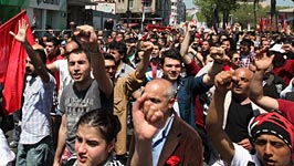 Gruppe kurdischer Organisationen konnte wegen Verkehrsproblemen nicht teilnehmen.beim 1. Mai in Istanbul
