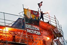 Programm auf einer großen Bühne direkt neben dem Denkmal aufgebaut