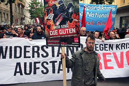 Gegen Krise, Krieg und Kapital!" zog die Demonstration nach einer