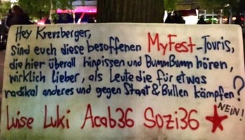 am Oranienplatz und zog zunächst durch das Myfest. Die kurze Route