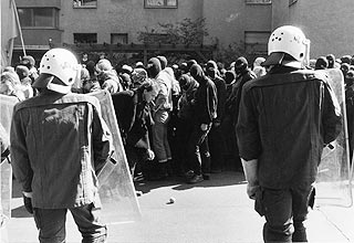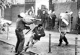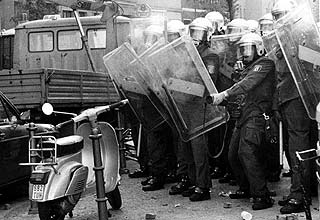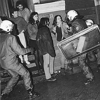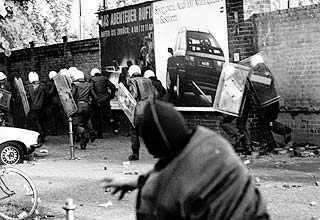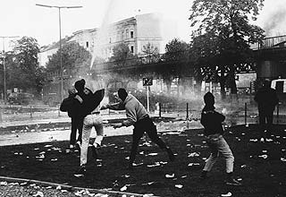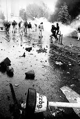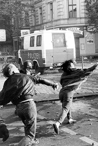 Pflastersteine und Bierflaschen und umgekippte Bauwagen und alles Mögliche.