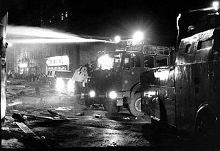 Treiben vor dem großen brennenden Verteilerkasten zu stürzen. Die Decke von