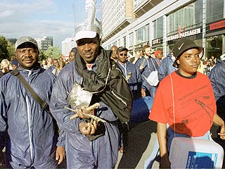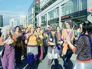 begleitet durch die Pinksilver-Samba-Band und informative Redebeiträge.