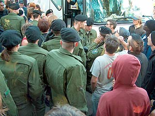 die zahlenmäßig hoffnungslos unterlegene Polizei nicht gerechnet