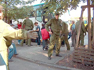 bekannt, daß ein Bus der Tour von der Polizei auf einem Parkplatz
