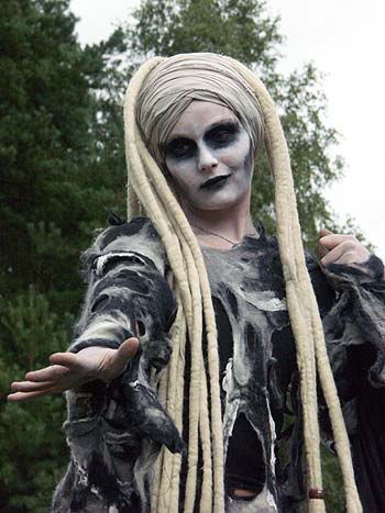und eine 16-jährige tragen einen meterlangen Staffelstab vom Zwischenlager