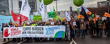 Kohle stoppen - Klimaschutz jetzt!Kurz vor Beginn der UN-Klimakonferenz in Kattowitz haben in Köln und Berlin zehntausende Menschen für den Kohleausstieg und den Klimaschutz demonstriert. Nach Angaben der Organisator*innen protestierten in Köln etwa 20.000 Menschen an der Deutzer Werft, in Berlin marschierten rund 16.000 Menschen zum Kanzleramt. Zu den Protesten hatten Umweltverbände und -initiativen aufgerufen, darunter BUND, Nabu und Greenpeace. |