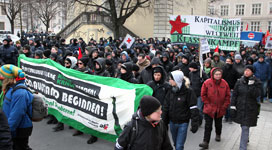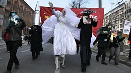 Block wurden auf Höhe des Hauptbahnhofes Seitentransparente getragen,
