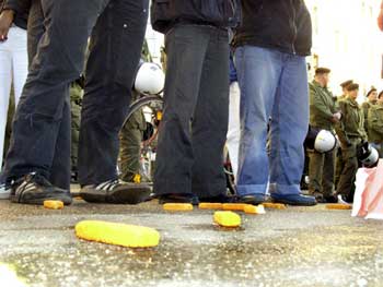 einigen Tagen, AktivistInnen hatten die Frontfassade der Yorck59 mit Farbbeuteln