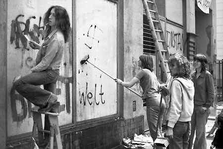 Die Besetzung der Adalbertstraße 6 in Kreuzberg im Juni 1980Im Frühjahr 1980 kam es in Berlin-Kreuzberg zu ersten Besetzungen leerstehender Häuser. Zu denen gehörte auch die Adalbertstraße 6, das erste Haus gleich hinter dem Neuen Kreuzberger Zentrum (NKZ), das am 7. Juni 1980 besetzt wurde. Ein Fotorückblick von Monika v. Wegerer. Massiver Leerstand, der Abriss vieler Altbauen und die Eroberung gemeinsamen Freiraums führte im Jahr 1980 zu der breiten, stadtweiten Hausbesetzerbewegung, in der mehr als 200 Häuser besetzt wurden. Bundesweit bekannt wurde sie durch den 12. Dezember 1980, denn an diesem Tag kam es nach der Räumung von 3 Häusern am Fränkelufer zu Krawallen, wie sie Kreuzberg schon lange nicht mehr erlebt hatt. Die "A6" wie wir das Hausprojekt selbst nannten, war zum Zeitpunkt der Besetzung Eigentum der städtischen Gewerbesiedlungs-Gesellschaft GSG. An diesem Tag im Juni fand vor dem Haus ein Straßenfest statt, das eine Menge Zuschauer anlockte. Wir nutzten - gut vorbereitet - die Gunst der Stunde und besetzten mit rund 15 Leuten das Haus. Dabei stellten wir fest, das wir im Haus nicht alleine waren. Es gab noch einen letzten Mieter: unseren Opa Salzi, wie wir Herrn Salzmann später nannten. Er hatte sich das Wohnrecht auf Lebenszeit beim Gericht erstritten. Nach anfänglichen Auseinandersetzungen mit der GSG, die das Haus verwaltete konnte die Hausgemeinschaft jedoch lange Zeit das Haus ihren Vorstellungen gemäß nutzen und ihre Angelegenheiten selbst verwalten. Etagenmietverträge wurden abgeschlossen, die Erdgeschosswohnung wurde als Nachbarschaftsladen genutzt und vieles wie Hofbegrünung, Hausreinigung, der Ausbau und die Nutzung des Dachbodens, eine Werkstatt im Hof oder ein offener Gemeinschaftskeller wurde gemeinschaftlich organisiert. Jahrelang blieb für die A6 im Großen und Ganzen alles beim Alten. Nur einige der Bewohner wechselten. Doch nachdem die GSG 2005 das Haus verkaufte, sollte sich das grundlegend ändern. Erst kamen Mieterhöhungen, dann der Versuch die Mietverträge für die Mieter zu verschärfen, schließlich massive Schikanen des neuen Hausbesitzers wie Kündigungsprozesse wegen angeblich vertragswidriger Nutzung der Wohnungen. Obwohl die Hausbewohner immer wieder den Versuch machten sich mit dem neuen Hausbesitzer zu einigen, verweigerte der entschieden den Dialog und klagt weiter. (siehe auch: Bericht im Mieterecho) Inzwischen ist der