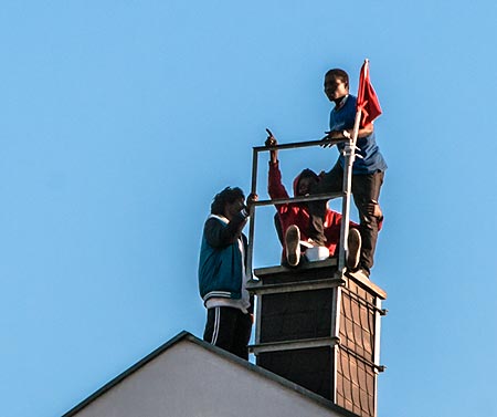 Dauerprotest haben am Sonntagabend die letzten Flüchtlinge das Hostel-Dach