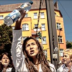 und Unterstützer*innen mit der Aktion Wasser aufs Dach