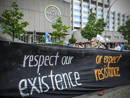 versammelten sich am 9. Juni 2017 etwa 250 Teilnehmer*innen vor Bayer,