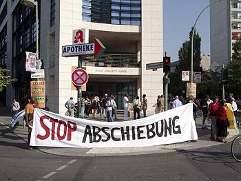 "Stopp Abschiebungen" (Aufruf zum Aktionstag)In Deutschland leben offiziell zirka sieben Millionen MigrantInnen und Flüchtlinge. Und etwa eine halbe Millionen Menschen leben ohne Papier unter prekärsten Bedingungen. Selbst die Eingebürgerten haben keinen sicheren Status, da ihnen der deutsche Pass jederzeit entzogen werden kann, wie es im Moment bei zirka 100 000 Menschen aus der Türkei der Fall ist. Trotz der verbal anerkannten Realität der Migration, vor allem wegen der konsumierbaren Multikultivielfalt, wird das Leben der MigrantInnen und Flüchtlinge in Deutschland durch Rassismus, Ausgrenzung und Generalverdacht bestimmt.Ein menschenwürdiges Leben wird den MigrantInnen und Flüchtlingen systematisch verweigert; denn die westliche Zivilisation braucht ihre Feindbilder, um sie für soziale Missstände, Bildungsdefizite, Kriminalität, Terrorismus etc. verantwortlich zu machen. Sie sind die ausgewählten Objekte, an denen die soziale Degradierung und die verschiedensten Formen der Repression des Kapitalismus zuerst angewendet werden. Hartz IV in gravierenderer Form gehört seit zwölf Jahren zum Alltag der Flüchtlinge. Seit Jahrzehnten gehören Wir haben es satt, ständig auf die unerträglichen Zustände, die Kontinuitäten des Kolonialismus aufweisen, hinzuweisen. Wir appellieren nicht an das Gewissen der bürgerlichen Demokratie und ihrer Anhängerschaft. Wer diese Zustände mit seinem Gewissen und seiner politischen Anschauung nicht vereinbaren kann, wird ohnehin handeln. Wir stellen nur klar: Wir haben ebenfalls ein unveräußerliches Recht auf ein menschenwürdiges Leben, für das wir immer und überall kämpfen werden. Europäischen Staaten und ihren Gesellschaften sollte es klar sein: Wir sind nicht Nutzniesser dieses vermeintlichen Wohlstands, wie es oft verleumderisch behauptet wird. Der Reichtum dieses Landes beruht auf der Ausplünderung unserer Länder. Wir sind hier, weil unsere Länder durch westliche Länder ausgebeutet und zerstört werden. Wir appellieren an die MigrantInnen und Flüchtlingen: Wir dürfen es nicht länger zulassen, dass wir als Menschen 2. oder 3. Klasse behandelt werden. Keiner außer uns ist die Kraft, die mit diesen Zuständen Schluss machen kann. Lassen wir uns nicht aufteilen in gute und böse MigrantInnen und Flüchtlingen. Nur mit einer internationalistischen Haltung und Solidarität haben wir die Chance, den Herrschenden Paroli zu bieten. Mit Almosen für Einzelgruppen sollten wir uns nicht zufrieden geben. Glücklich sind wir erst dann, wenn alle das sagen können. Organisieren wir uns in allen Lebensbereichen und vernetzen wir unsere Initiativen! Kämpfen wir bis der gegenwärtige Zustand sich grundlegend ändert! Gegenwärtig werden auch in Berlin und Brandenburg hunderten von Menschen Abschiebungen angedroht. Das bedeutet Auslieferung an Verfolgerstaaten, die nicht selten mit Folter und Tod enden. Abschiebung von Menschen, die sich größtenteils mit der Familie hier seit Jahren eingelebt haben, bedeutet nicht anderes als ein zerstörerischer Einschnitt in ihrer Lebensgeschichte. Abschiebung, die Lebensgefahr für die Betroffenen billigend in Kauf nimmt, ist eine alarmierende Form der rassistischen Praxis, der wir entschieden entgegentreten müssen. Schluss mit entwürdigenden