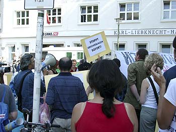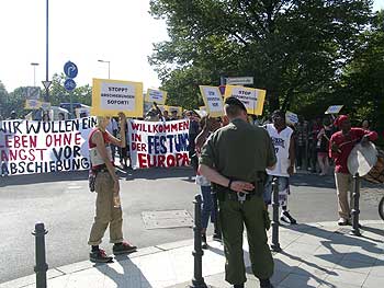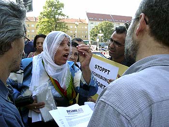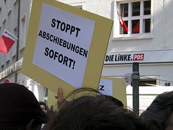 heißt: Kampf um alle Rechte! "Wir sind heute hier, um gegen Abschiebungen zu demonstrieren" (Auszüge aus dem Hauptredebeitrag))Laut Tagesspiegel