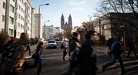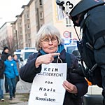 Magdeburg 2013 nazifreiStraßenfeste, Blockaden, Infostände und spontane Aktionen - am 12. Januar 2013 heißt es in Magdeburg: "kein Fußbreit den Faschisten". Ein breites Bündnis aus Gewerkschaften, Organisationen, Parteien und Privatpersonen haben aufgerufen, die Neonazis zu blockieren. 12.000 Menschen stellen sich dem geplanten "Trauermarsch" der Initiative gegen das Vergessen" entgegen, dessen Route von der Polizei bis zuletzt geheimgehalten wurde. Durch die Aktionen können die Neonazis nicht im Zentrum der Stadt marschieren. Schließlich wird ihre Demoroute in den Süden Magdeburgs verlegt, in den Stadtteil Buckau. Eine besondere Provokation ist die Genehmigung einer Rede der Neonazis um Andy Knape, dem Bundesvorsitzenden der NPD-Jugendorganisation Junge Nationaldemokraten (JN), vor dem libertären Zentrum L!Z. Die Polizei geht während des gesamten Tages massiv Gegendemonstranten an.