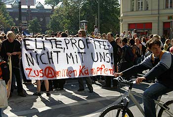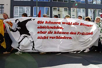 dabei sich in Demo-Blöcken aufzustellen. Sprechchöre wie "Wir