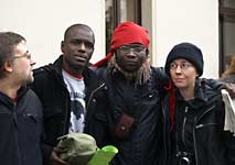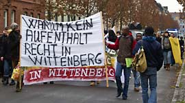 Abolish! Demo gegen AsylgesetzeZum Abschluss einer "Abolish-Kampagne" gegen rassistische Sondergesetze für Flüchtlinge demonstrierten rund 600 Menschen am 11. Juni gegen die Residenzpflicht und das Asylbewerberleistungsgesetz. Die Demonstration startete an der EU-Vertretung vor dem Brandenburger Tor mit Redebeiträgen zu Frontex und Menschenrechtsverletzungen an den EU-Außengrenzen und mit Livemusik von Mal Élevé (Sänger von Irie Révoltés). Die Route führte entlang der Friedrichstraße zur Mohrenstraße (an der mit entsprechendem Gemüse auf eine längst fällige Namensänderung hingewiesen wurde) hin zum Sozialministerium. Dort wurde besonders die skandalöse medizinische Versorgung und die Leistungen nach dem Asylbewerberleistungsgesetz angesprochen, die unter dem Existenzminimum liegen. Schließlich gings über den Potsdamer Platz zum Tiergarten. Alles in allem eine laute, bunte Demo am richtigen Ort. Es wurde auch drauf geachtet, alle Redebeiträge mindestens zweisprachig zu halten, leider wurden die Zwischenkundgebungen dadurch ziemlich lang. Vor 15 Jahren wurde das Grundrecht auf Asyl in Deutschland faktisch abgeschafft. Im Juli 1993 führte der Bundestag die sog. "Drittstaatenregelung" und das Konzept der "sicheren Herkunftsländer" ein. Seitdem können Menschen, die in ihrem Herkunftsland zwar politisch verfolgt werden, aber über einen "sicheren" Drittstaat einreisen, ihr Recht auf Asyl nicht mehr geltend machen. Sie werden in das angeblich "sichere" Land zurückgewiesen. |