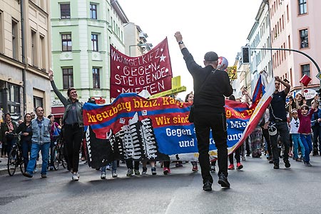 und steigende Mieten in Kreuzberg. Die Lärmdemo begann am Haus Skalitzer