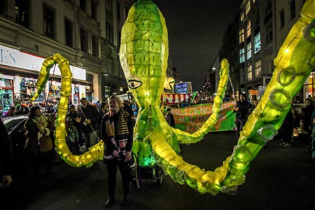 Monstermäßiger Laternenumzug gegen Verdrängung