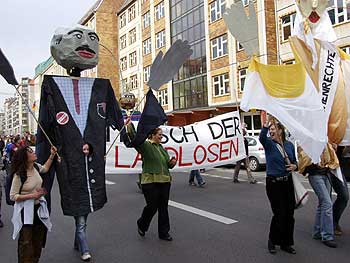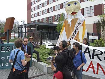 Zwar waren wir mit 50-100 Leuten keine große Demo, trotzdem gelang es uns viele PassantInnen aufmerksam auf uns und neugierig zu machen. (Fortsetzung: unten) - Anne (Aktionsnetzwerk) - |