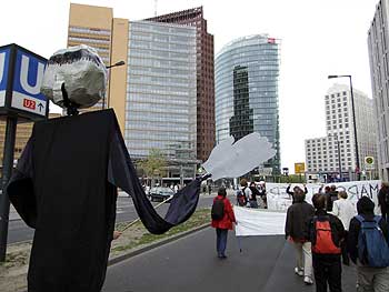 am Potsdamer Platz. Das Aktionsbündnis wollte damit auf Verletzungen
