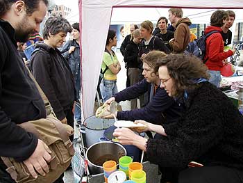Essen von Food for Action und der Discursiv Picnic-Gruppe Unwetter, eine