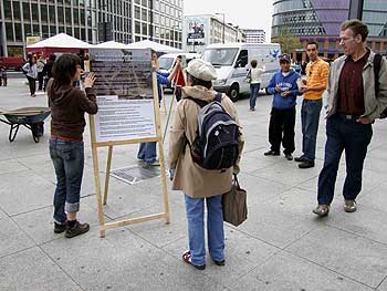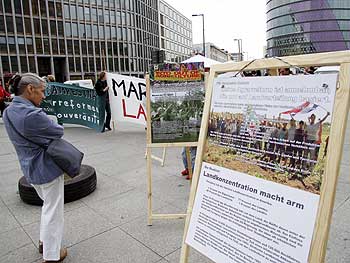 Landlosen weltweit aufmerksam machen. Am Potsdamer Platz gab es lecker
