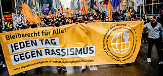 My right is your right!Hier ein Ausschnitt aus ihrer Presseerklärung: Seit mehr als zwei Jahren kämpfen Geflüchtete und Unterstützer*innen in Berlin sichtbar gegen den institutionellen Rassismus in Deutschland und Europa, dem so viele Menschen permanent in ihrem Alltag ausgesetzt sind. Akute und konkrete Forderungen der Geflüchteten sind die vollständige Abschaffung der Residenzpflicht, ein Stopp der Unterbringung in Lagern und aller Abschiebungen sowie Bleiberecht, Bildung, Arbeitsmöglichkeiten und frei gewähltes Wohnen für alle also ein Ende der politisch gewollten sozialen Isolierung von Geflüchteten. Die Kampagne sowie die Großdemonstration richten sich gegen diese rassistischen Praxen und werden die langjährigen Forderungen von Geflüchteten weiter in die Öffentlichkeit tragen. My Right Is Your Right! ist eine Kampagne, die von Geflüchteten, Kulturschaffenden, Aktivist*innen, Jurist*innen, Kirchenvertreter*innen, Gewerkschafter*innen, Vereinen und Nachbarschaftsinitiativen getragen wird, die sich jetzt in einem Netzwerk zusammengeschlossen haben. Uns verbindet der Wunsch einer stärkeren politischen Einmischung in die Berliner Flüchtlingspolitik. Wir werden die Türen von Theatern und weiteren öffentlichen Orten für das Anliegen einer gerechteren Politik im Sinne der Geflüchteten öffnen. Unsere Forderungen sind nicht neu, sondern werden von Geflüchteten in Deutschland schon seit Jahrzehnten an die Politik gerichtet. Uns geht es weder um Wohltätigkeit noch um humanitäre Hilfe. Wir stellen nicht nur Forderungen an politische Entscheidungsträger*innen, sondern wollen auch in unserem Alltag Rassismen und Ausschlüsse bekämpfen. Unser Ziel ist es, eine langfristige Infrastruktur aufzubauen, die alltägliche und strukturelle Rassismen thematisiert und ihnen entgegenwirkt. Daher wird die Kampagne einen Austausch von vielfältigen Projekten und Angeboten bieten: Über Arbeit, Bildung, Schlafplätze, Sprachkurse und Spenden bis hin zu Auftritten, Performances und Aktionen. Ausgangspunkt unserer Kampagne sind die selbstorganisierten Proteste der Geflüchteten aus der Gerhart-Hauptmann-Schule (GHS) und vom Oranienplatz. Am vergangenen Freitag wurde den Bewohner*innen der GHS vom Bezirksamt erneut die Räumung zum 19.3.2015 angedroht und das trotz der Vereinbarung mit dem Bezirksamt im Juli 2014. Dieses Agreement, das zusagt, dass ein Teil der Schule einerseits zum selbstorganisierten International Refugee Center umgebaut wird und andererseits weiterhin Wohnraum für die aktuellen Bewohner*innen bleibt. Wir treten ein für das Recht auf gleiche Rechte für alle Menschen. In diesem Sinne: Your Right is My Right! My Right is Your Right! |