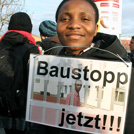 Asylknastes auf dem neuen Flughafen Schönefeld demonstrierten am