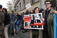 und empfingen ihn mit Marmeladebeuteln und Plakaten: "Push back
