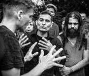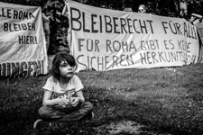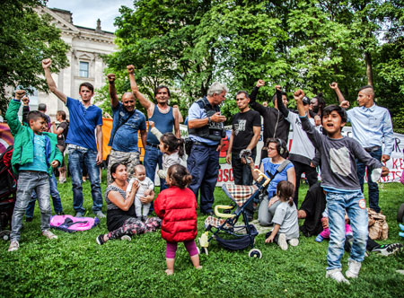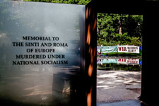Roma besetzen Denkmal der im Nationalsozialismus ermordeten Roma und SintiEtwa 50 Roma, darunter