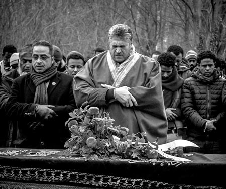 und Ausland, begleiteten die Beisetzung von Khaled Idris Bahray in Berlin.