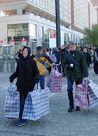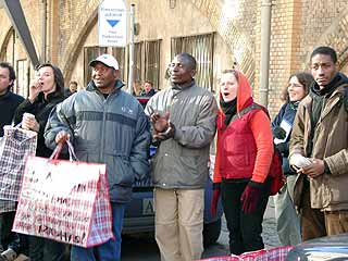 Rathauspassage der WBM, um auf die Situation von 20 lohngeprellten afrikanischen