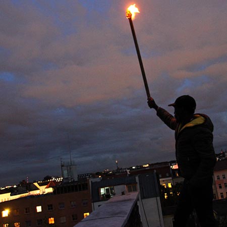 besetzen das Dach der Gerhart Hauptmann Schule und verhindern damit die Räumung des Gebäudes.
