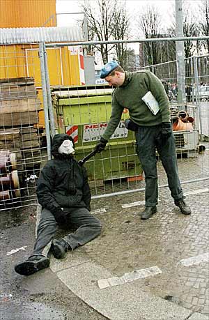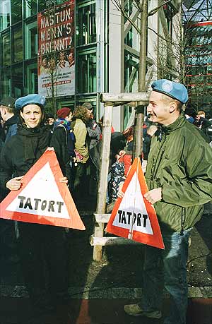 TatortbesichtigungAntimilitaristischer Konvoi durch Berlin und Potsdam "Es
