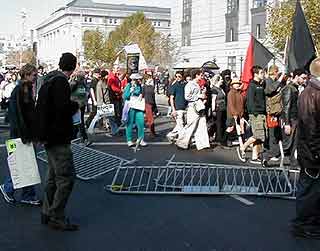 ca. 3000 AnarchistInnen eine Breakaway-Demo (kleine Demo, die sich von