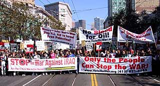Entscheidend war der Hauptslogan "Stop the WAR against Iraq", unter