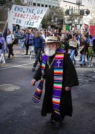die Strasse ging, um gegen einen Krieg in Irak zu protestieren. Ihnen