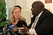 Auf einer Pressekonferenz der Initiative in Gedenken an Oury Jalloh