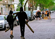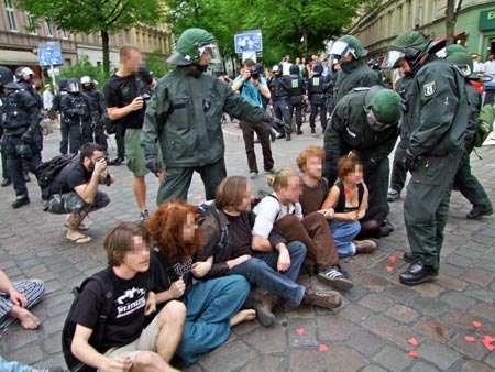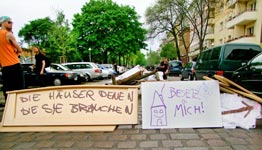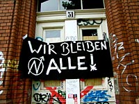 Scheinbesetzung in der Görlitzer Straße 51Am späten Nachmittag des 29. April 2012 fand die Scheinbesetzung eines leer stehenden Schulgebäudes in der Görlitzer Straße 51 in Berlin-Kreuzberg statt. Hierzu hatten sich ca. 200 AktivistInnen versammelt, um gegen steigende Mieten und Gentrifizierung zu protestieren. Hinzu kamen diverse AnwohnerInnen und BesucherInnen des Görlitzer Parks, die sich dem Protest spontan anschlossen. Die AktivistInnen errichten Kleinstbarrikaden, die von der bald anrückenden Polizei jedoch unversehens geräumt wurden. Zugleich wurden die anwesenden AktivistInnen und SympathisantInnen in den Görlitzer Park und angrenzende Straßen abgedrängt. Zu Festnahmen kam es nicht. |