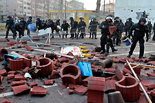 Feuerliche Einweihungsfeier der EZBBrennende Barrikaden,