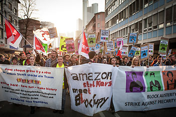 tausend Menschen aus dem In- und Ausland die friedlichen Blockupy-Blockaden