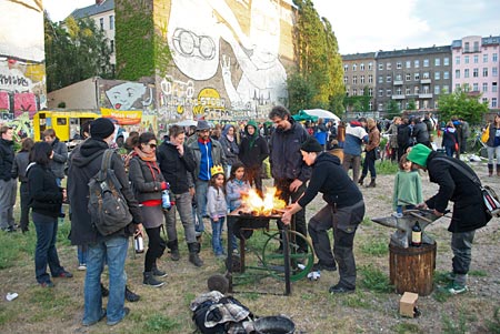 Anwohner_Innen der Cuvry-Brache/Ecke Schlesische Straße auf die