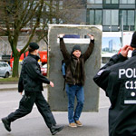 vertretene Polizei die Abrißarbeiten kurzerhand abbrach. |