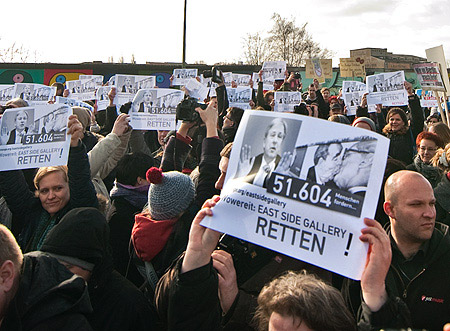 Proteste an der East Side GalleryDie denkmalgeschützte