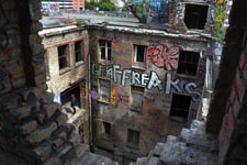 jedoch unter Denkmalschutz und wird daher vorerst stehen bleiben.  | Für alle, die kein Flash öffnen können, hier die Bilder als Diashow (html-Version) Im Rahmen eines Praktikums war Leo Lagodka zwei Wochen lang zu Besuch im Umbruch Bildarchiv. In dieser Zeit machte er sich auf die Spuren einer ehemaligen Eisfabrik in der Köpenicker Straße am Spreeufer. Hier sein Foto-Portrait über eine Ruine, die einen Besuch wert ist. |