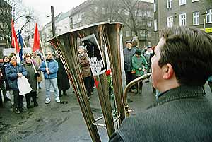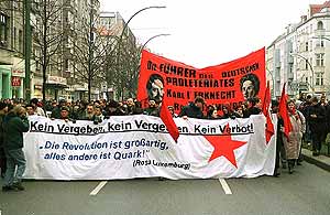 | Trotz Anschlagsdrohung:Gedenken an Rosa Luxemburg und Karl LiebknechtKaum vorstellbar, daß Staatsfeierlichkeiten wegen Anschlagsdrohungen eines Einzelnen abgesagt würden.