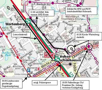 die NPD ab 11.00 in Hohenschönhausen voraussichtlich auf der Strecke ab